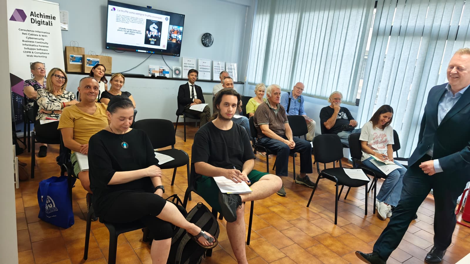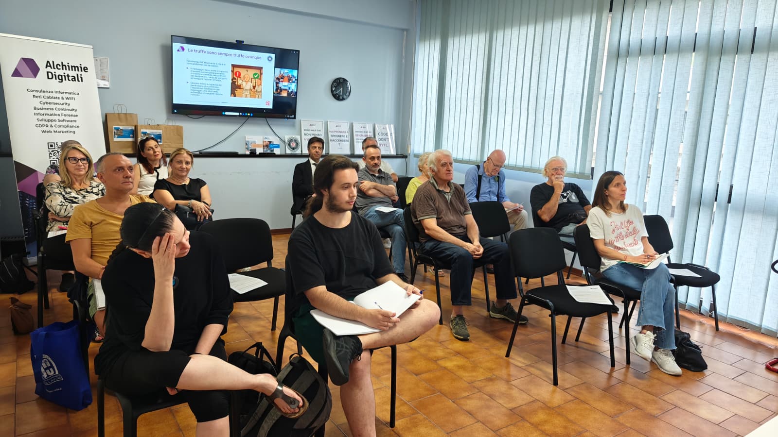 Il ciclo di quattro incontri gratuiti, tenutosi nella sede di Alchimie Digitali a Modena, ha affrontato i principali rischi digitali che coinvolgono quotidianamente utenti di ogni età: dalle truffe online al furto di identità, passando per la gestione delle password e la protezione dei propri account.
